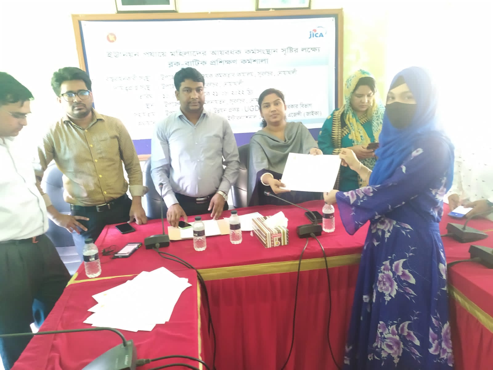 ৪। জাপান ইন্টারন্যাশনাল কো-অপারেশন এজেন্সি (জাইকা) এর অর্থায়নে ১০/০৮/২০২২-২৫/০৮/২০২২ পর্যন্ত ১০ কর্মদিবস ব্যপী ২০ জন নারী উদ্যোক্তাকে ব্লক-বাটিক প্রশিক্ষণ দেয়া হয়। (সমাপ্ত)